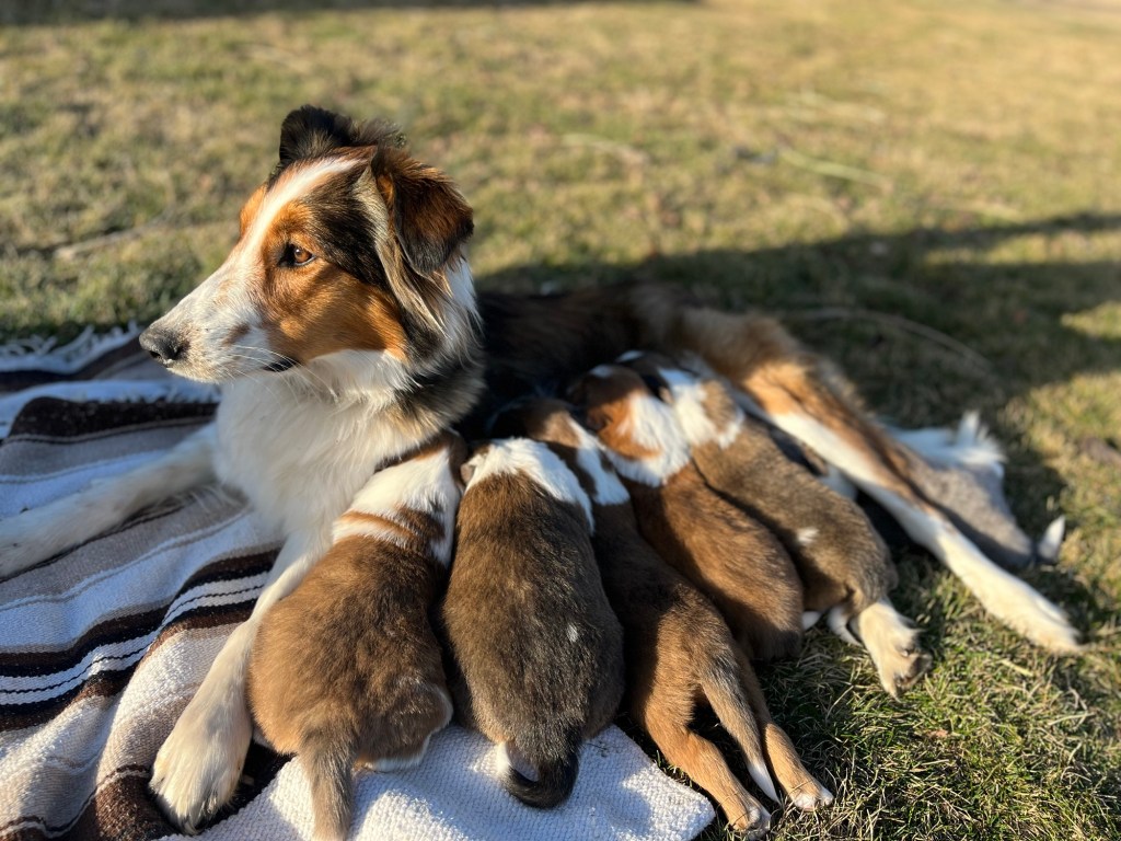 We had some exciting adventures this weekend with the puppies. They enjoyed some time in the sun and meeting new visitors. They are growing so fast! CeCe has done a great job and she’s probably ready for a slow down. We’ll introduce some puppy mash or gruel this week. I imagine they’ll love it. They are getting more playful and curious. It’s fun to see that emerge.