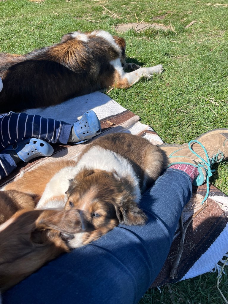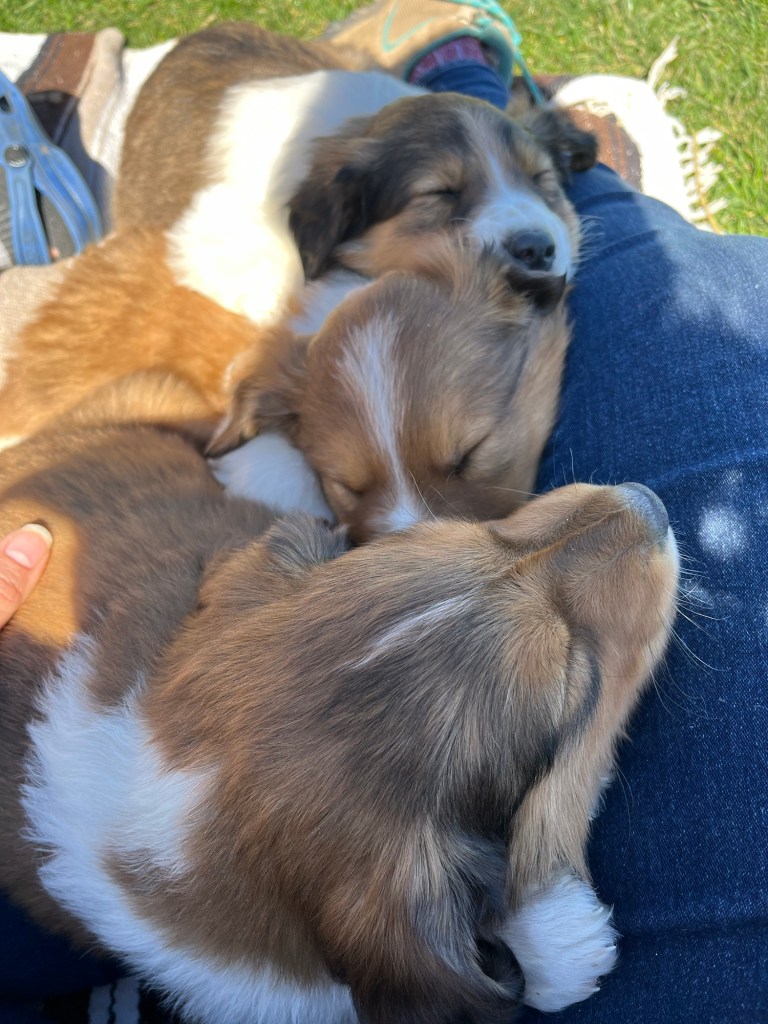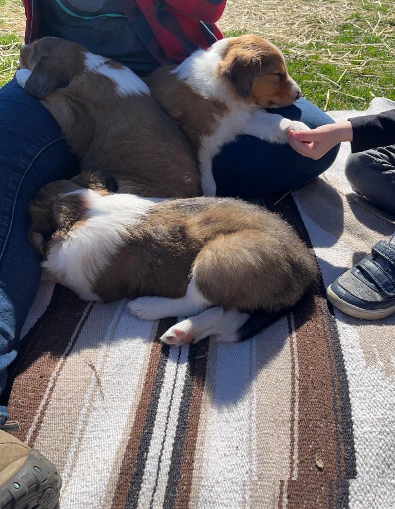 The puppies love exploring, playing, and cuddling. It’s fun to sit and then end up with a puppy pile. 🥰