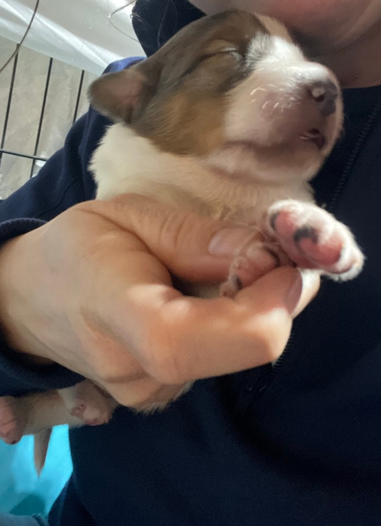 The puppies are a little over one week old. They have been getting cuddles indoors and outdoors. They also had a brief foray in the sunshine while I changed bedding this weekend.