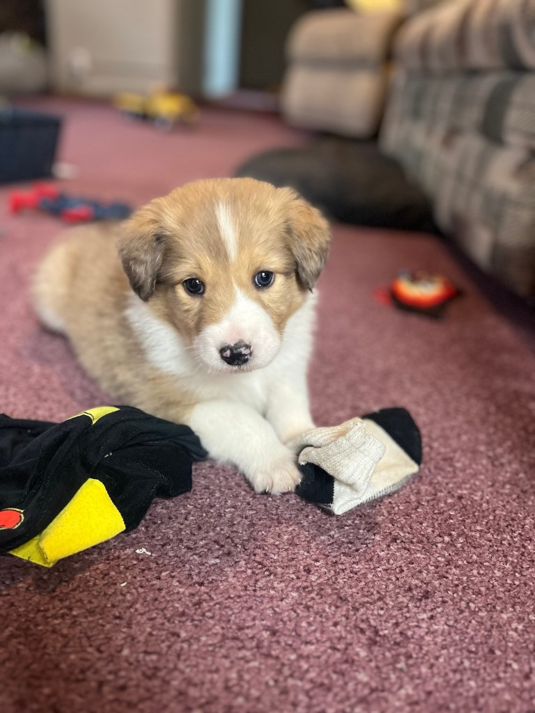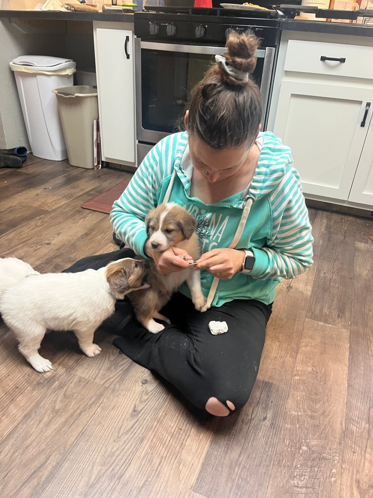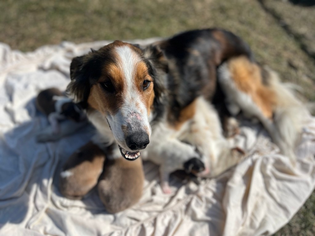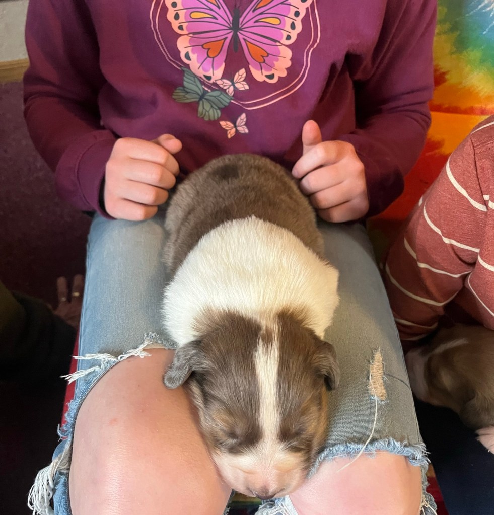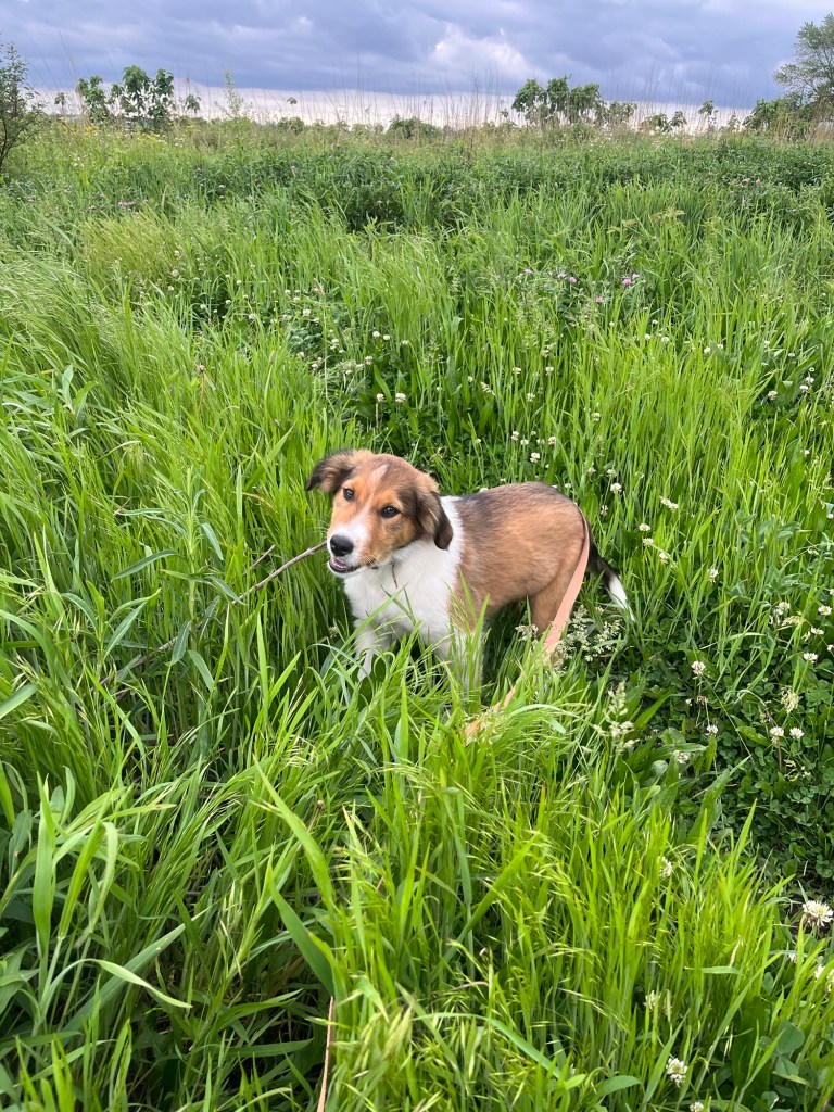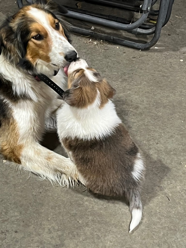 Heartland’s Saffira is still available. She’s up to date on vaccinations, genetically clear by parentage, and puppy registered. She’s in her teenage stage and a little bit of a challenge currently. She’s shown some reactivity in certain situations. We recently brought home a new puppy (Mountain Wave Anwen) and she has loved having her, although is a little too boisterous sometimes!