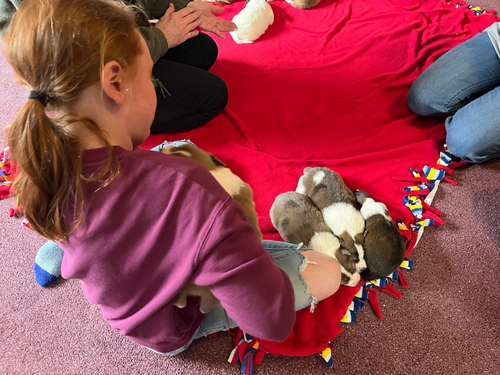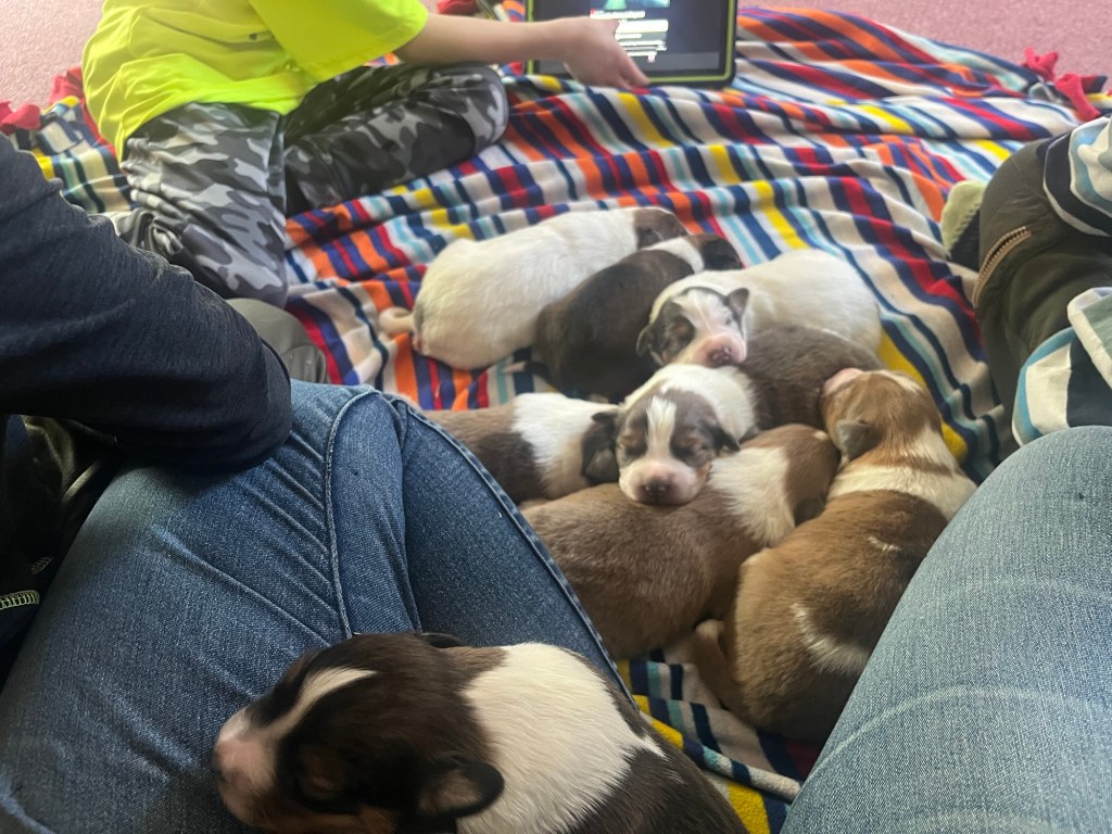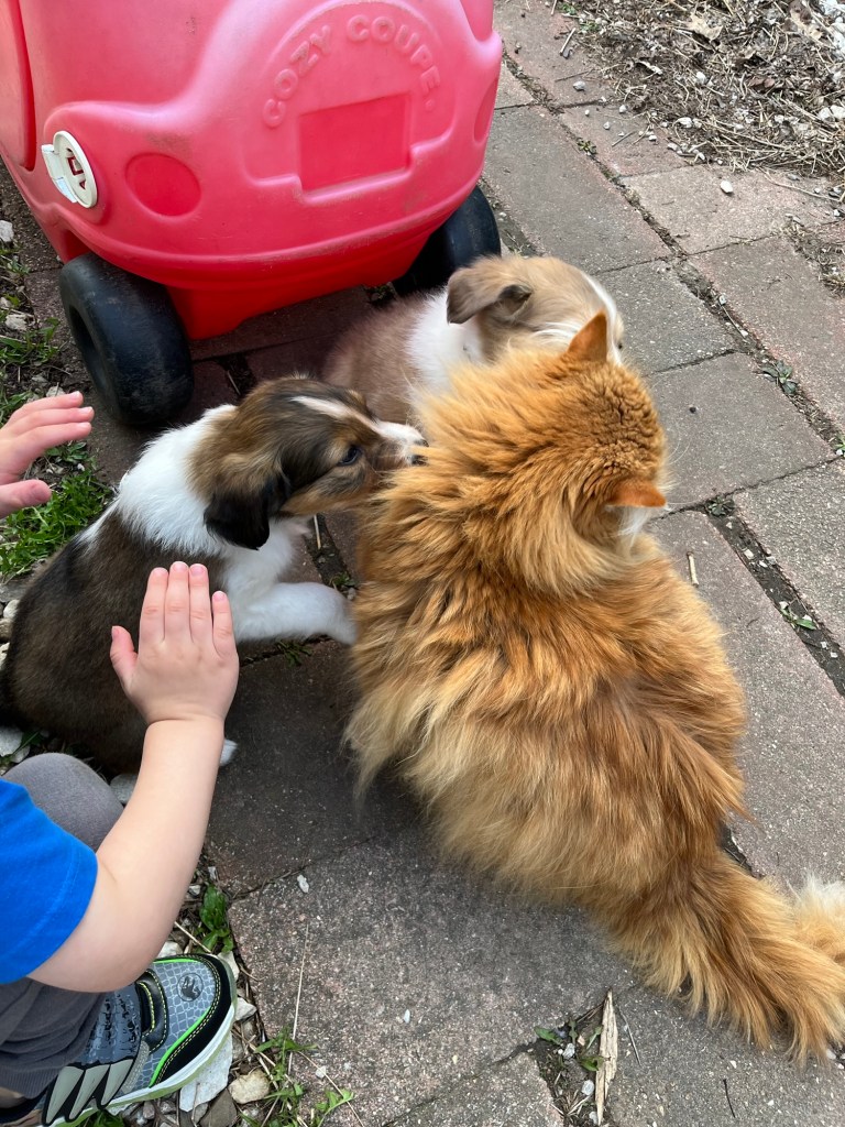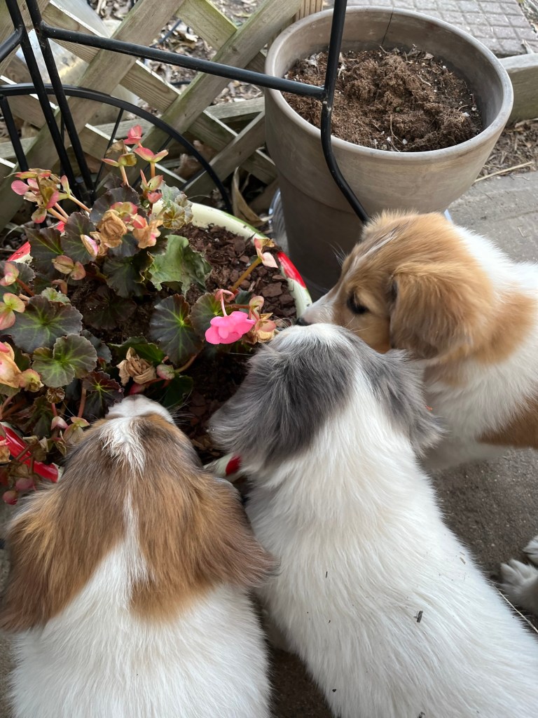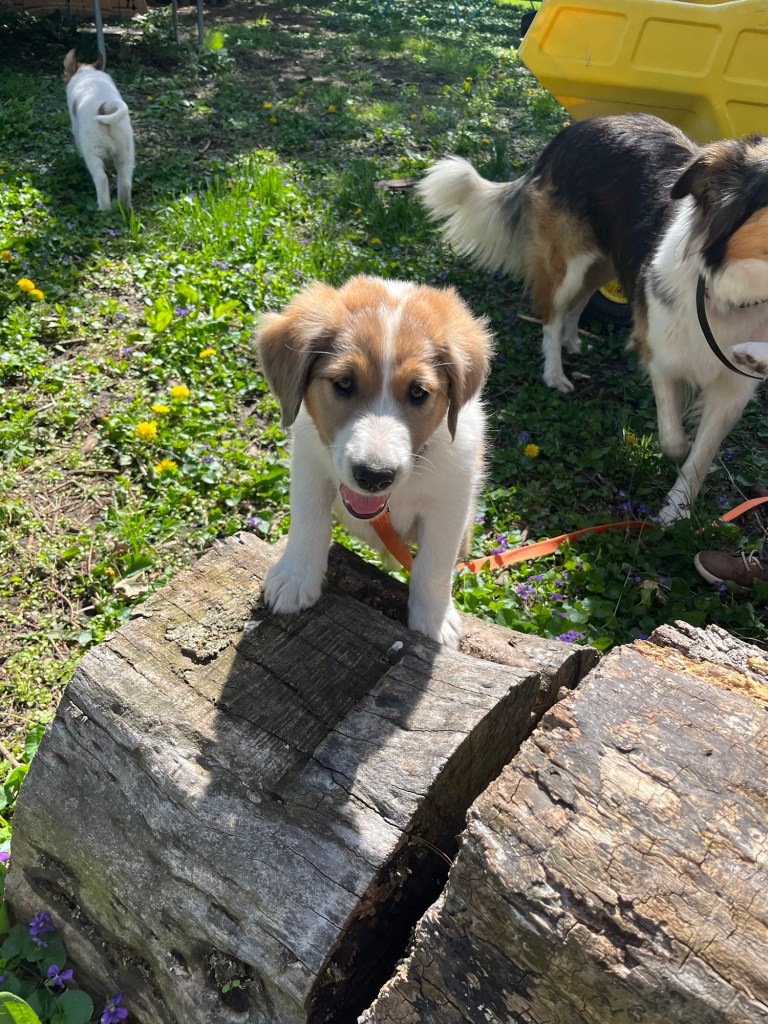 Happy Earth Day! The puppies are 7 weeks old and enjoying some of the nice spring weather we’ve been having. We had a lovely holiday weekend and the pups met some new friends as well.