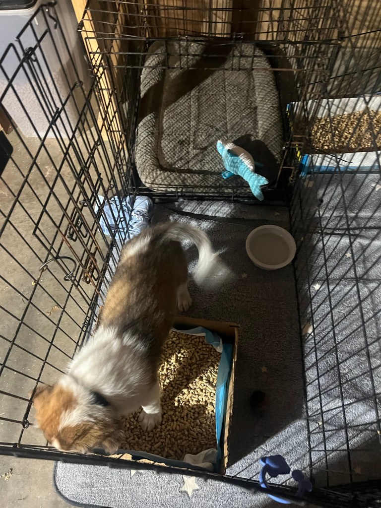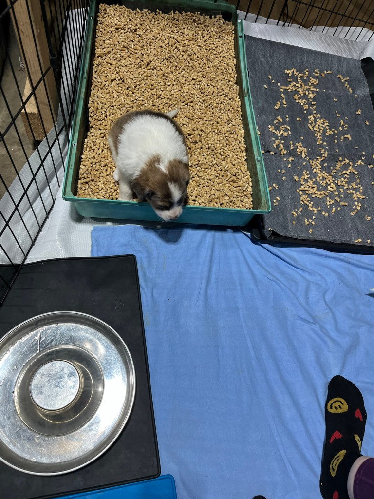 We’re gradually separating puppies at night in intervals to crate with a small pen and litter available.