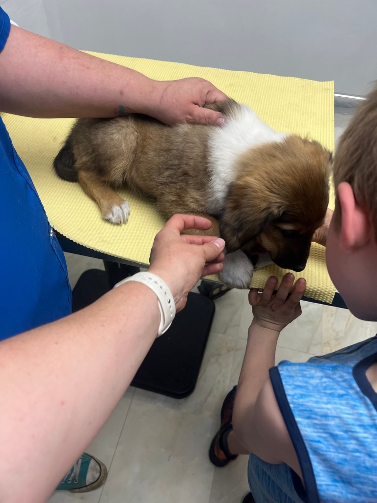 All the pups were vetted for their 8 week updates. They did a good job and the vet tech complimented them on their calmness.